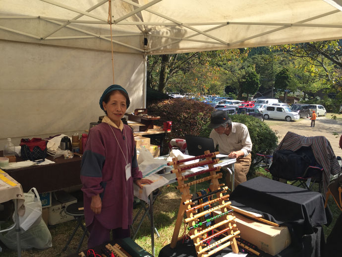 糸紡ぎ体験。 歌も歌いました。 投げ銭、投げ野菜、投げパン、投げクッキー❣️などなどゲット‼️ ありがとう😊 出店ブースの後ろには沢の音が…❣️ 楽しい1日でした。